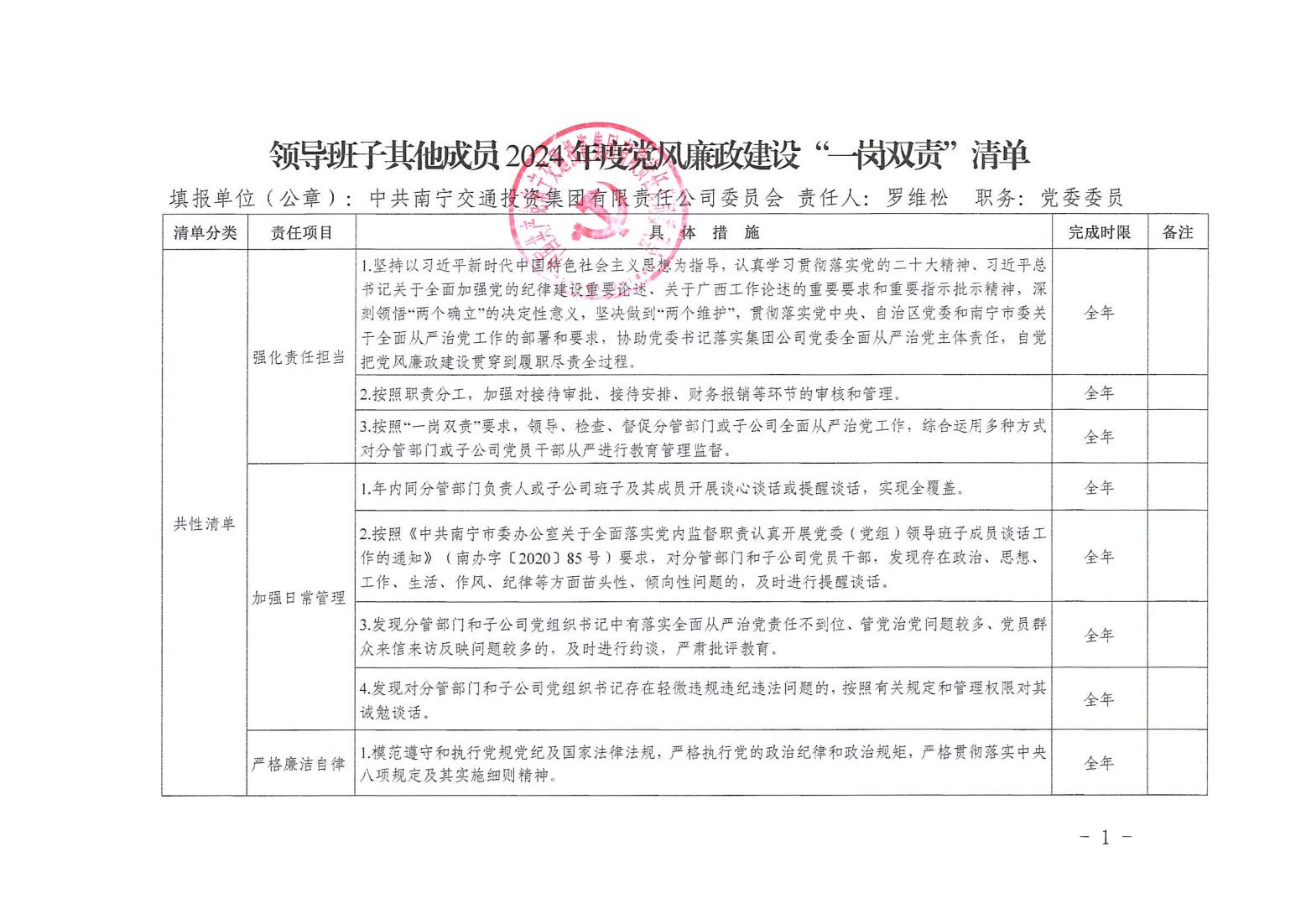 領(lǐng)導(dǎo)班子其他成員2024年度黨風(fēng)廉政建設(shè)“一崗雙責(zé)”清單(三)