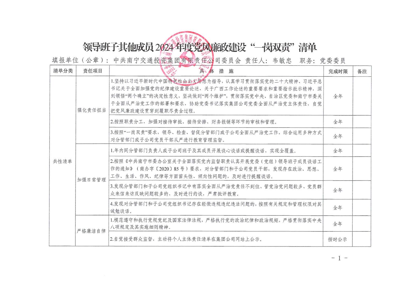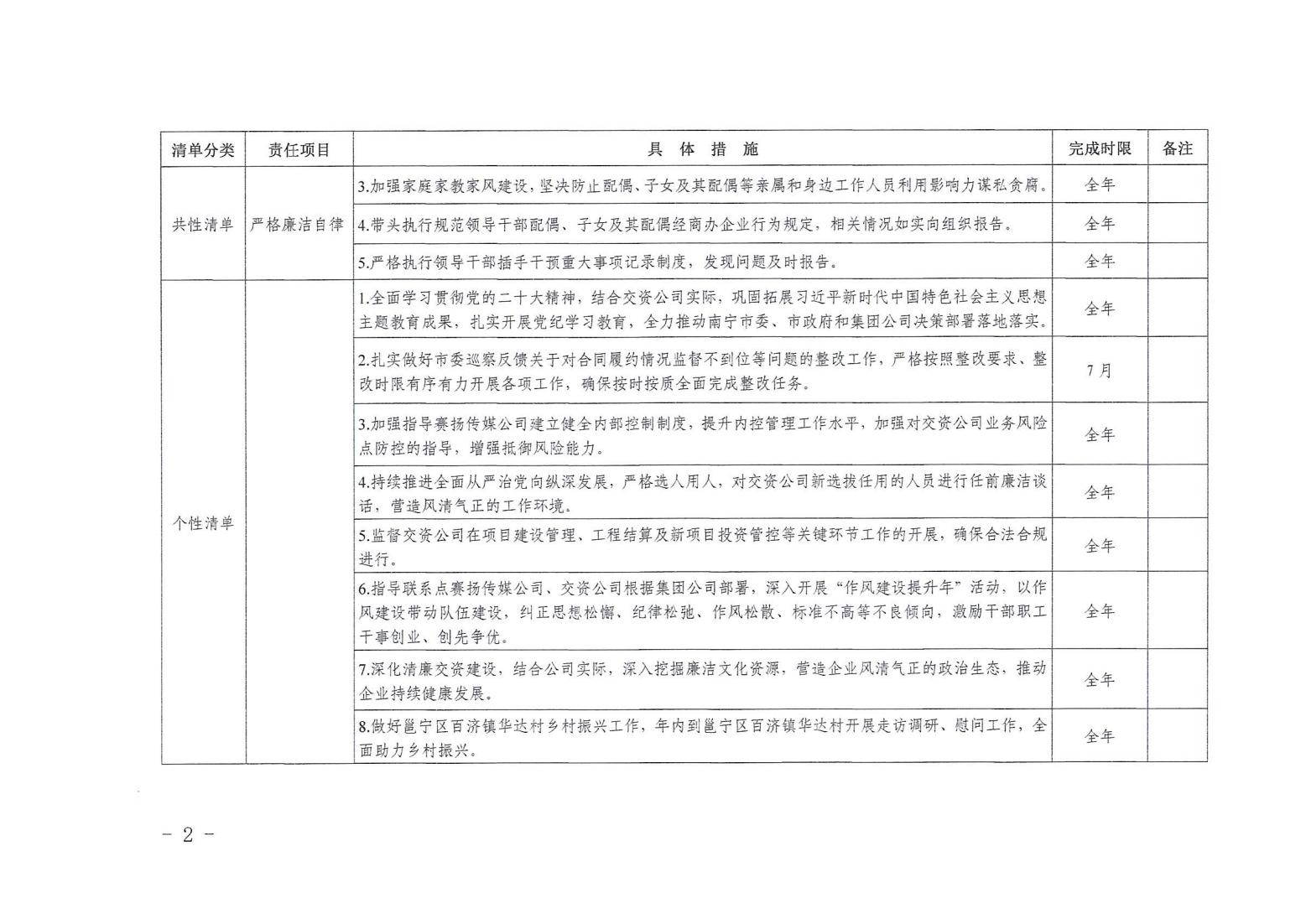 領導班子其他成員2024年度黨風廉政建設“一崗雙責”清單(八)