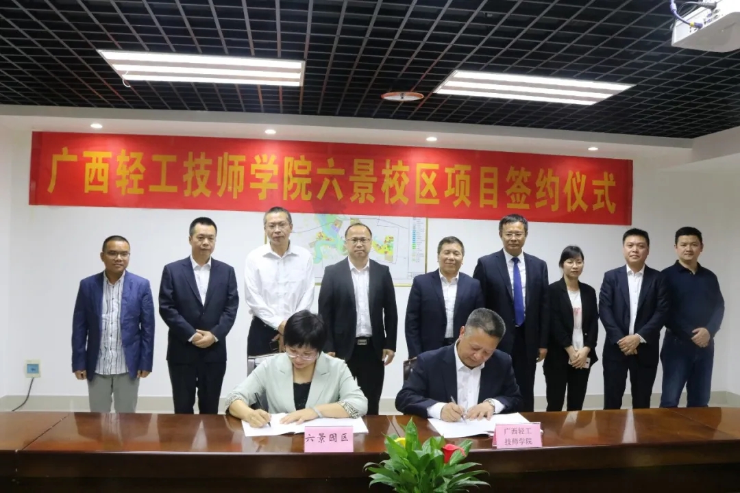 4月29日下午,南寧六景工業(yè)園區(qū)管理委員會(huì)、廣西輕工技師學(xué)院在六景工業(yè)園區(qū)內(nèi)正式簽訂廣西輕工技師學(xué)院六景校區(qū)項(xiàng)目投資合同書,標(biāo)志著交投園區(qū)公司服務(wù)跟進(jìn)的又一項(xiàng)目簽約。