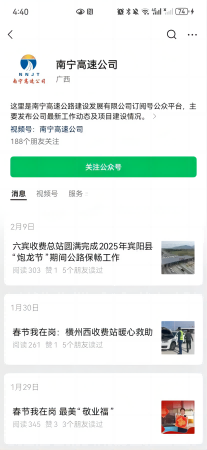 司乘只需關(guān)注“南寧高速公司”微信公眾號,點(diǎn)擊發(fā)消息即可輕松開啟在線咨詢之旅。這種將AI智能客服融入微信公眾號的方式,充分考慮了司乘人員的使用習(xí)慣,進(jìn)一步拉近了企業(yè)與司乘之間的距離。
