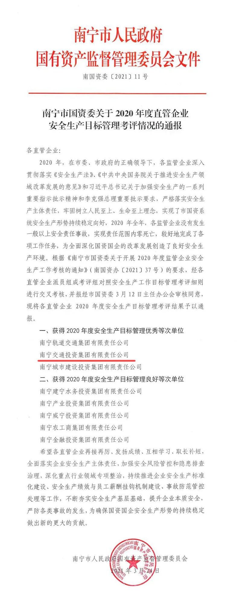 集團公司獲得2020年度國資系統(tǒng)安全生產(chǎn) 目標管理考核優(yōu)秀等級單位稱號