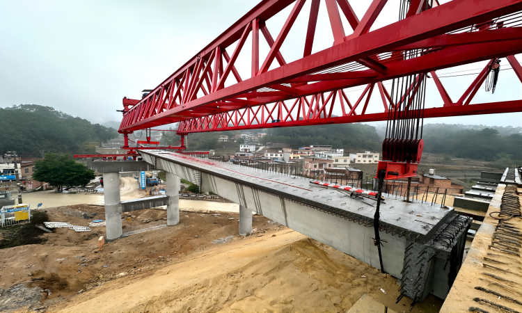 南賓公路項目高田大橋首榀箱梁順利架設(shè)完成