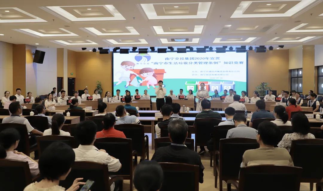 為貫徹落實習(xí)近平總書記對垃圾分類工作作出的重要指示精神,倡導(dǎo)廣大干部員工共同參與垃圾分類,樹立綠色的環(huán)保意識,9月8日,集團公司在四樓多功能報告廳舉行“垃圾分類我先行·創(chuàng)建文明齊參與”專題知識競賽。集團公司領(lǐng)導(dǎo)農(nóng)明姬、張玉波、黃海燕,南寧市國資委綜合科科長謝雄勝以及市屬八大集團相關(guān)人員出席比賽。 本次比賽各子公司共組成11支隊伍參加,比賽設(shè)置必答題、搶答題、互動答題和加賽題四個環(huán)節(jié),題目涵蓋了《南寧市生...