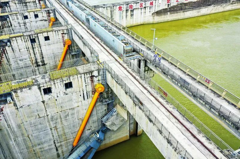 工作人員在邕寧水利樞紐工程攔河大壩進(jìn)行安全巡查